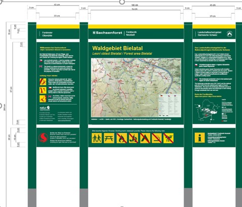 An den Karten der jeweiligen Infotafeln können Besucher Ihre Touren künftig besser planen. Genauso werden Informationen zur Naturausstattung der näheren Umgebung vorgestellt. Für ein gutes Miteinander von Mensch und Natur im Nationalpark sind die Verhaltensregeln und Sicherheitshinweise in bewährter Form mit Piktogrammen veranschaulicht und kurz erläutert, neuerdings auch in tschechischer und englischer Sprache. Auch Hinweise auf die Gefährdung durch herabfallende Äste und die stellenweise bestehende Felssturzgefahr sind enthalten, denn das Betreten des Nationalparks geschieht auf eigene Gefahr.